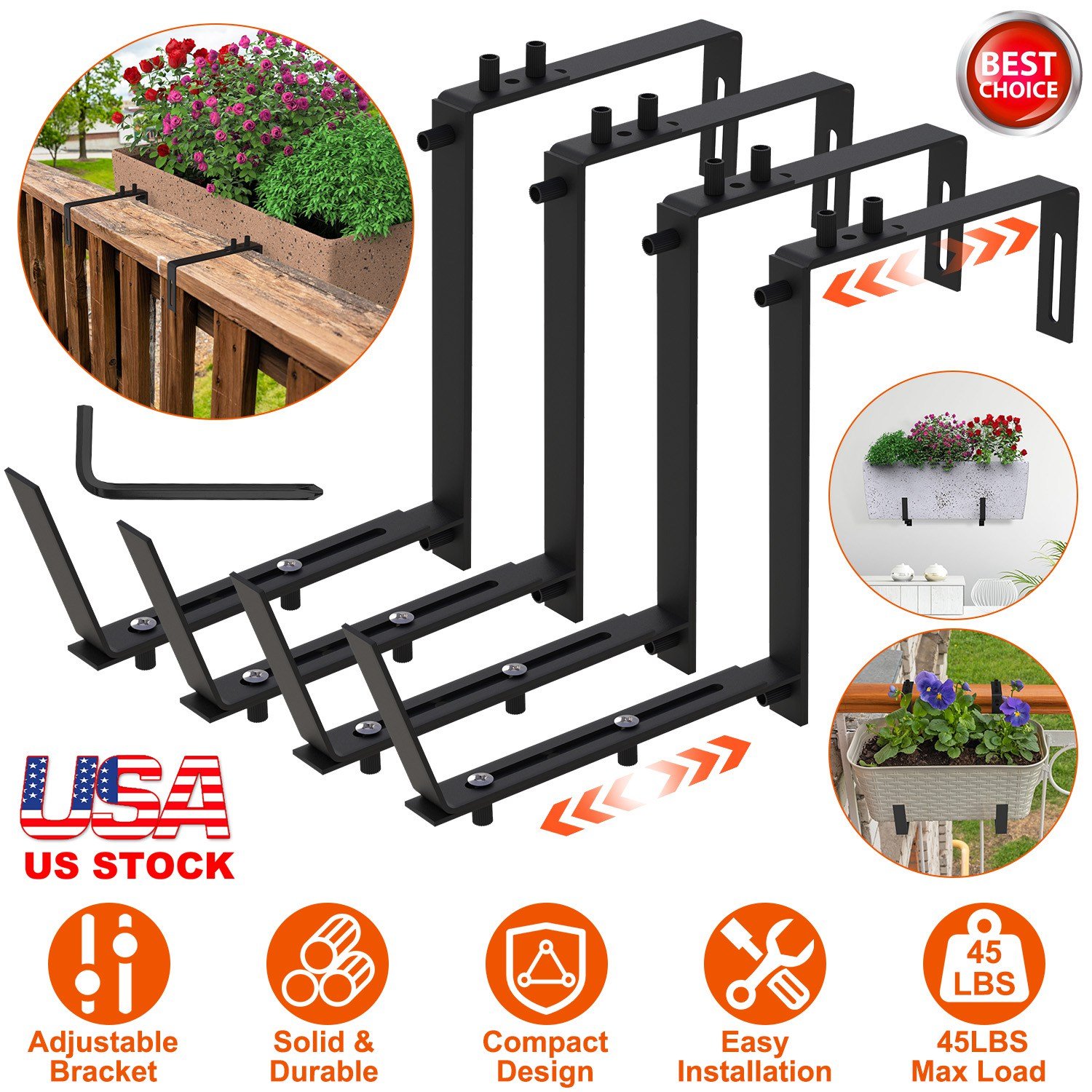 Home > 4Pcs Adjustable Planter Box Brackets Flower Box Holders Window Boxes Planters Hooks No Drill Railing Planter Mounts for Windowsills Garden Fences Balc