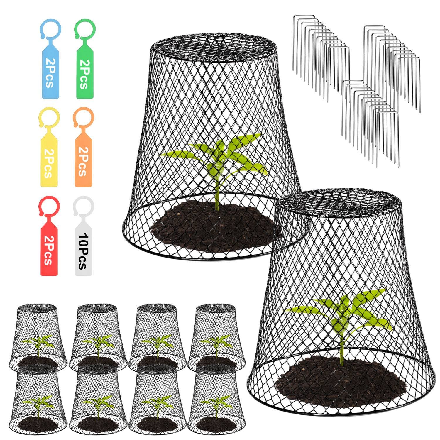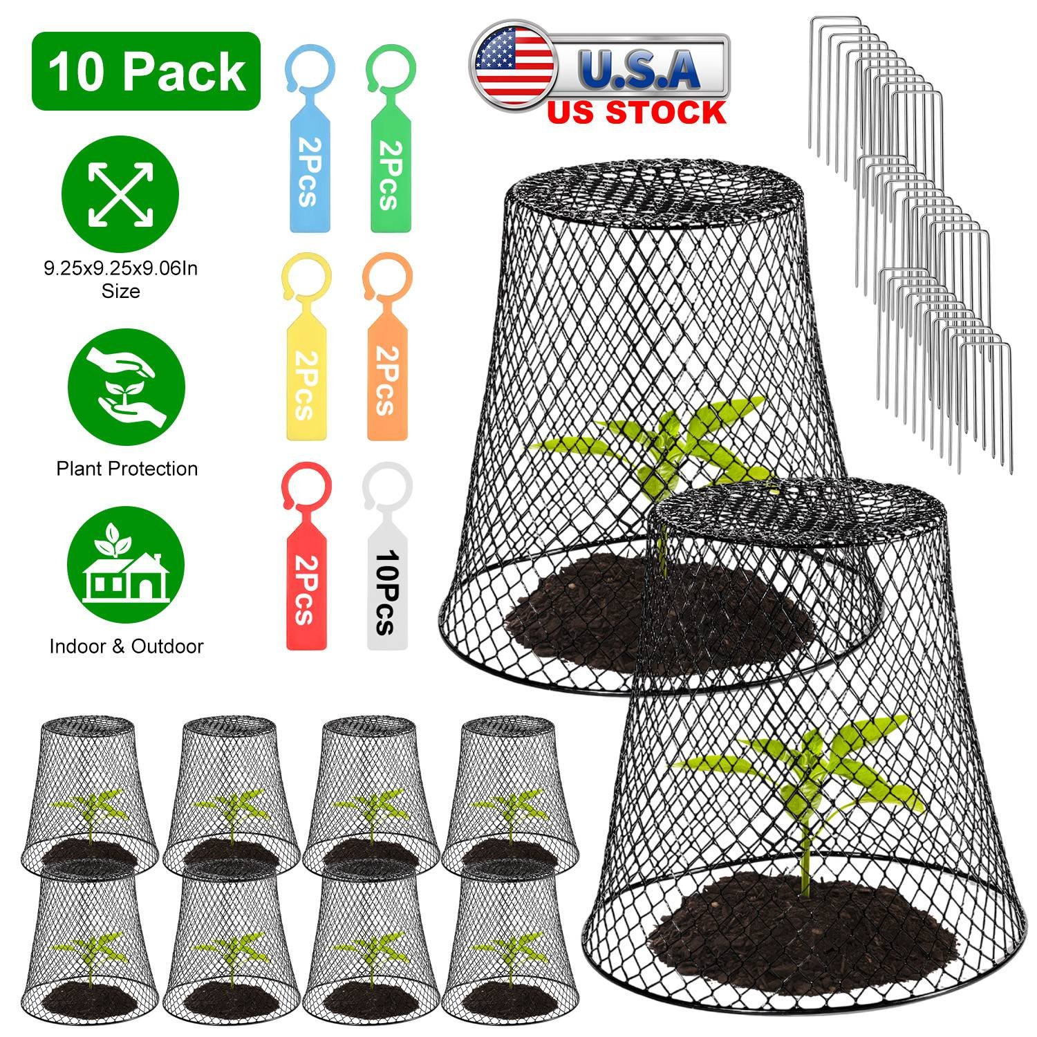 Home > 10Pack 9.25x9.25in Chicken Wire Cloches Plant Covers Metal Garden Cages Heavy Duty Plant Protectors with 30 Stakes 20 Labels Keep Bunnies Chicken Squi