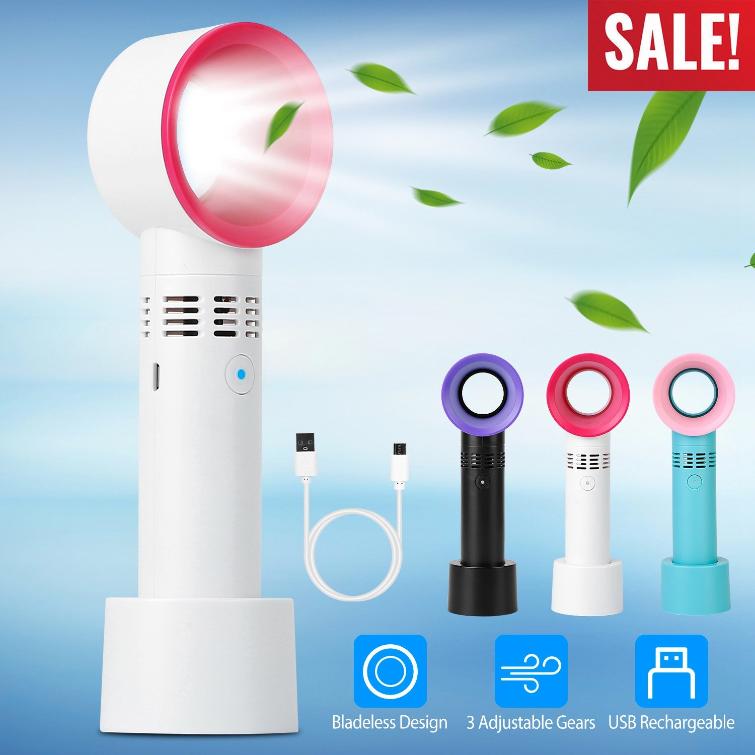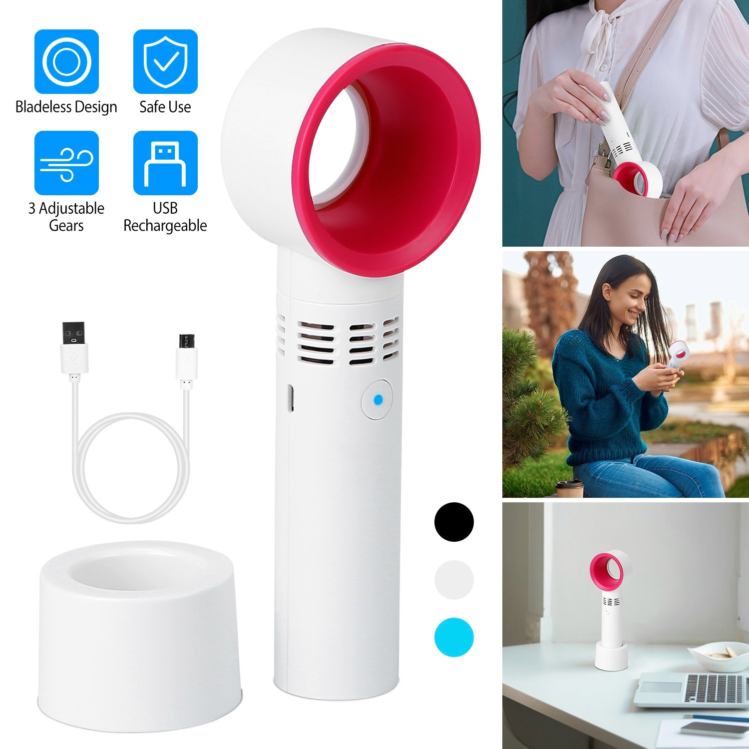 Portable Handheld Bladeless Fan Rechargeable Cooling USB Fan Desktop Use Fan w/ 3 Gears LED Indicator Cooling Fan