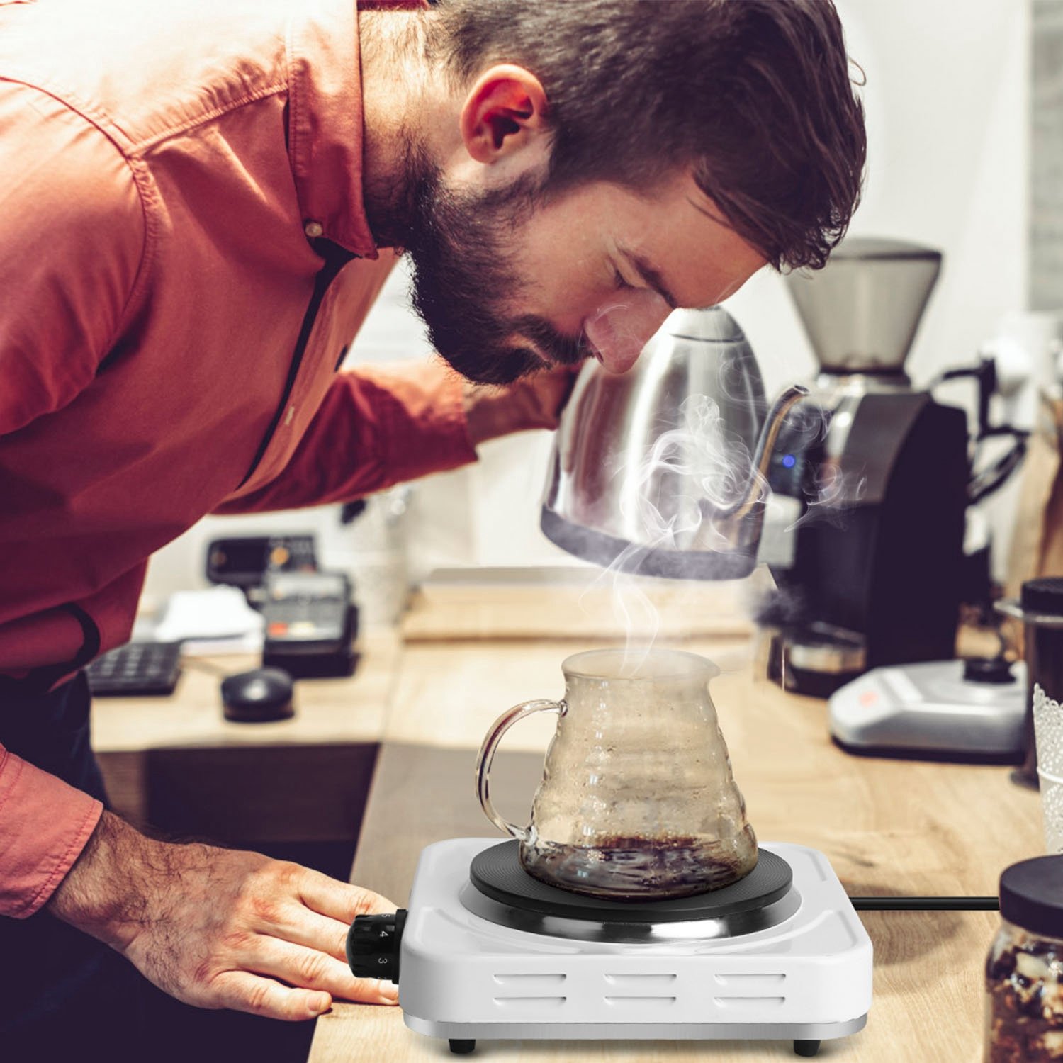 Home > 1500W Electric Single Burner Portable Heating Hot Plate Stove Countertop RV Hotplate with Non Slip Rubber Feet 5 Temperature Adjustments